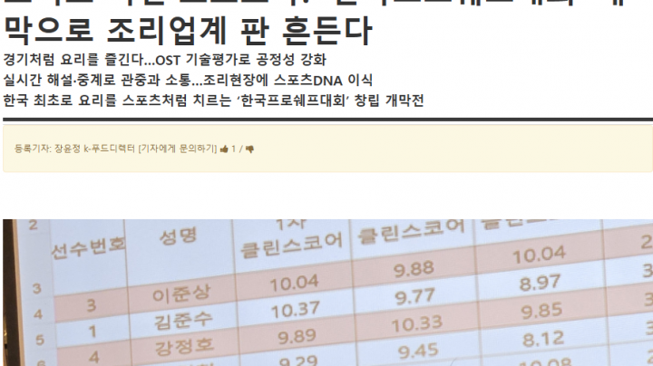 한국프로쉐프대회 이민 초대 총재님의 한식일보 기사입니다.대회에 관하여 이해하기 좋은 내용들이니 참고하시기 바랍니다.
